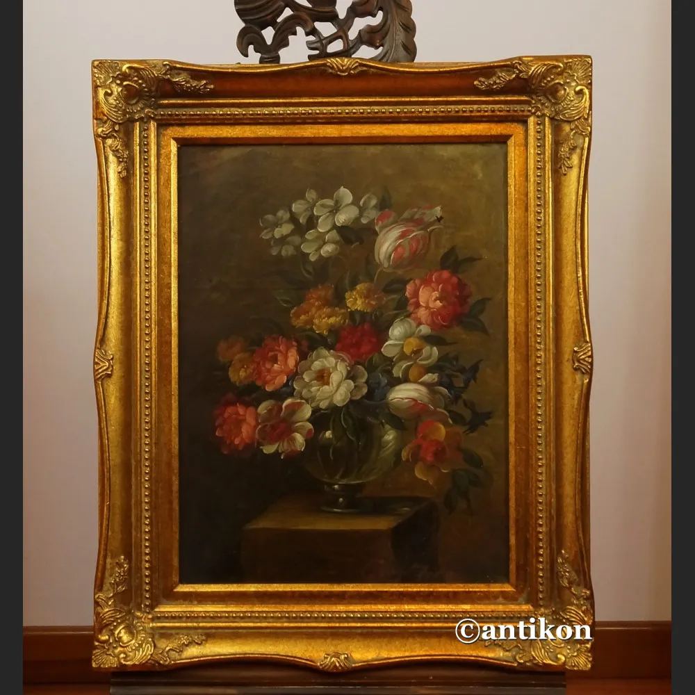 Ten obraz olejny na płótnie, utrzymany w duchu mistrzów holenderskiego malarstwa kwiatowego, ukazuje okazały bukiet pełen róż, tulipanów i piwonii. Z niezwykłą precyzją oddano każdy detal – od aksamitnych płatków po subtelne odbicia światła na liściach. Harmonijna kompozycja i elegancka paleta barw czynią dzieło ponadczasową ozdobą wnętrza.
