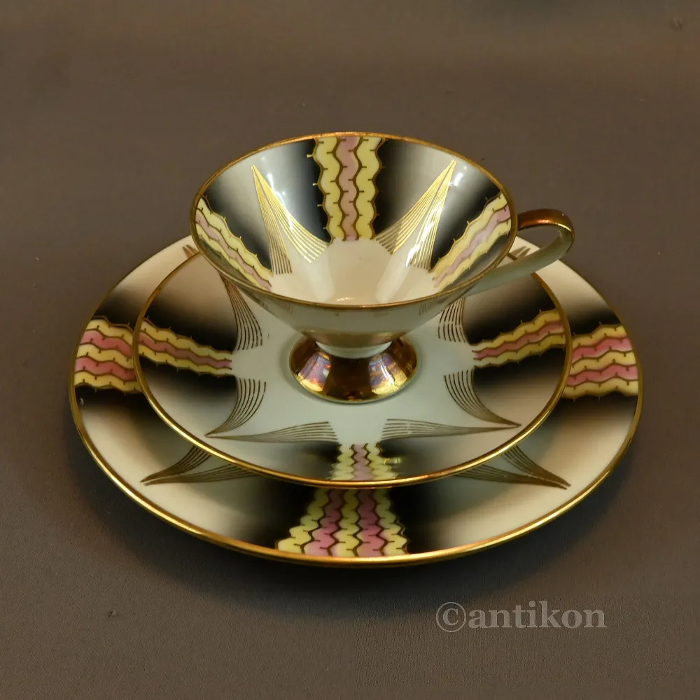 Przedwojenna filiżanka trio geometryczna