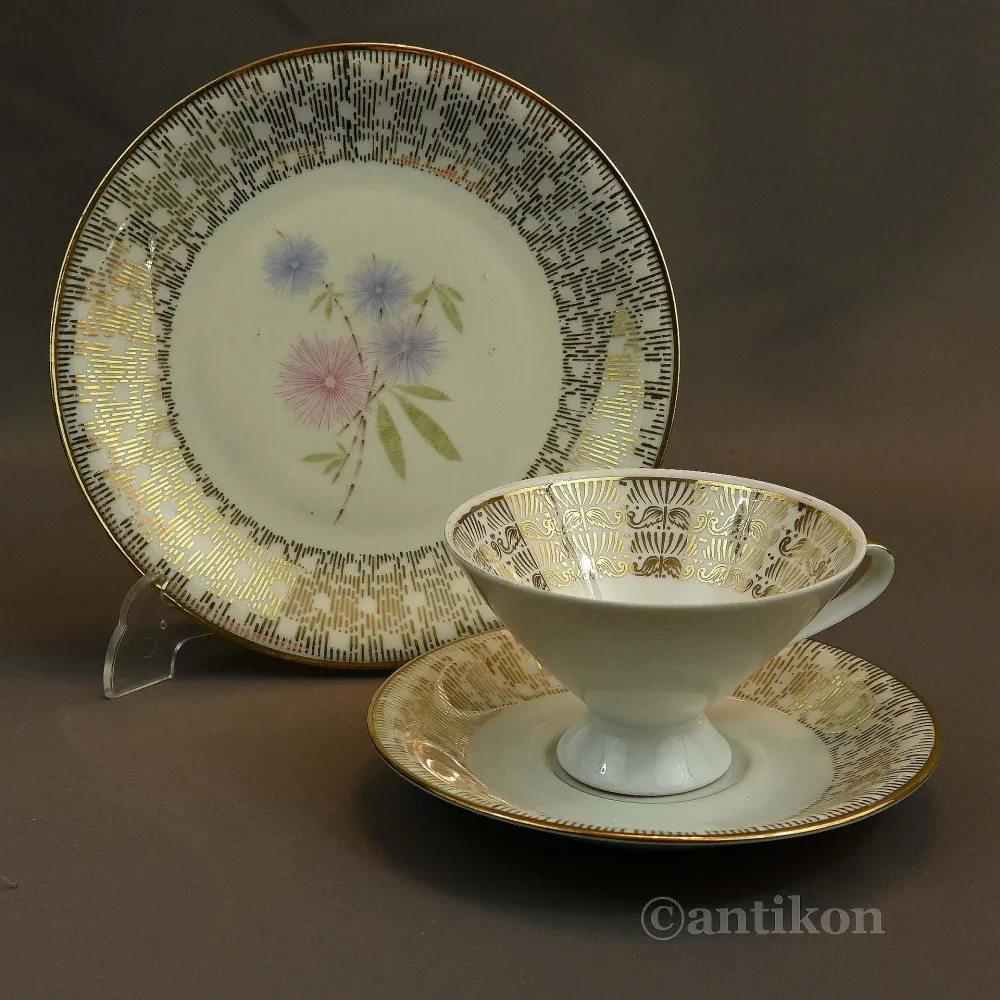 Sygnowane talerzyki , dwie różne sygnatury Oscar Schaller Elfenbein Bavaria znaki pochodzą z lat 1935- 40. Filiżanka bez sygnatury, pasuje do kompletu.