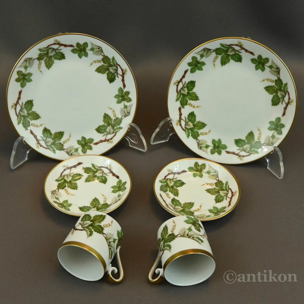 Kawowy zestaw dla dwojga prezent zachwyci wszystkich koneserów urokliwej, starej porcelany. Jego piękny winogronowy motyw soczyście rozbrzmiewa na tle białej porcelany. Widać tu jak porcelanowe cacko produkowane było z wielką miłością i dbałością o szczegóły.