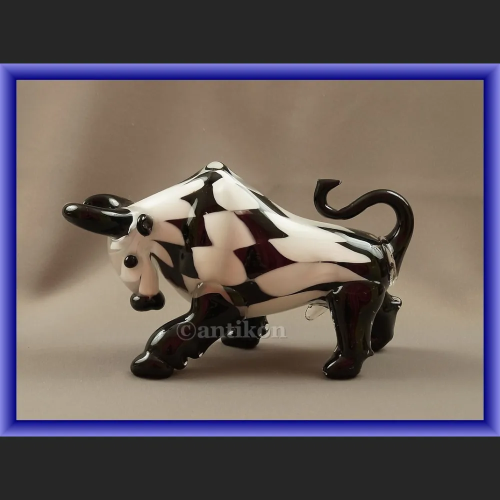 Szklany modernistyczny byk symbol hossy giełdowej z włoskiego szkła Murano. Przedmioty wytwarzane na wyspach Murano od starożytności cieszą się wielkim zainteresowaniem. Dizajnerski byk będzie cieszył oczy długie lata. Byk to współczesny symbol pieniędzy i giełdowej hossy. Przedmiot ciężki. Stan bardzo dobry.